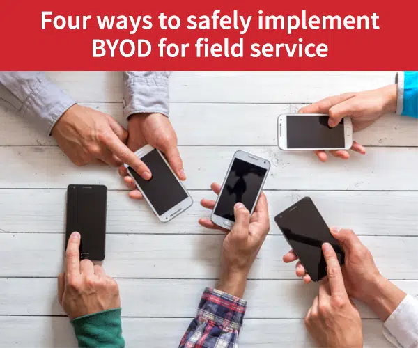 The modern American workplace has come a long way. While we used to all just bring our own lunches, we are now all bringing our own devices. The concept, also called BYOD, has several benefits: it lends itself to convenience, can boost productivity, and might even make your employees happier. It is also growing rapidly in popularity; one study found that about 74% of organizations currently have or plan on implementing some sort of BYOD policy. And, with demand for convenience and field service opportunities being constantly on the rise, it is unlikely that BYOD will go out of fashion anytime soon. But, despite some obvious upsides, a BYOD policy also comes with some major risks for many organizations. Devices can get lost or be stolen. Unfortunately, not every employee can be trusted with delicate information. Unsecured networks and hacking put all of us at risk every day when we rely on technology. Even with all of these potential hurdles, however, BYOD can be effectively and safely implemented. Below, you’ll find 5 tips for implementing a BYOD policy for field service in your own organization: